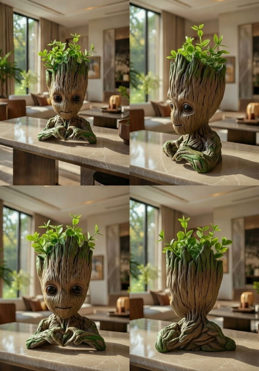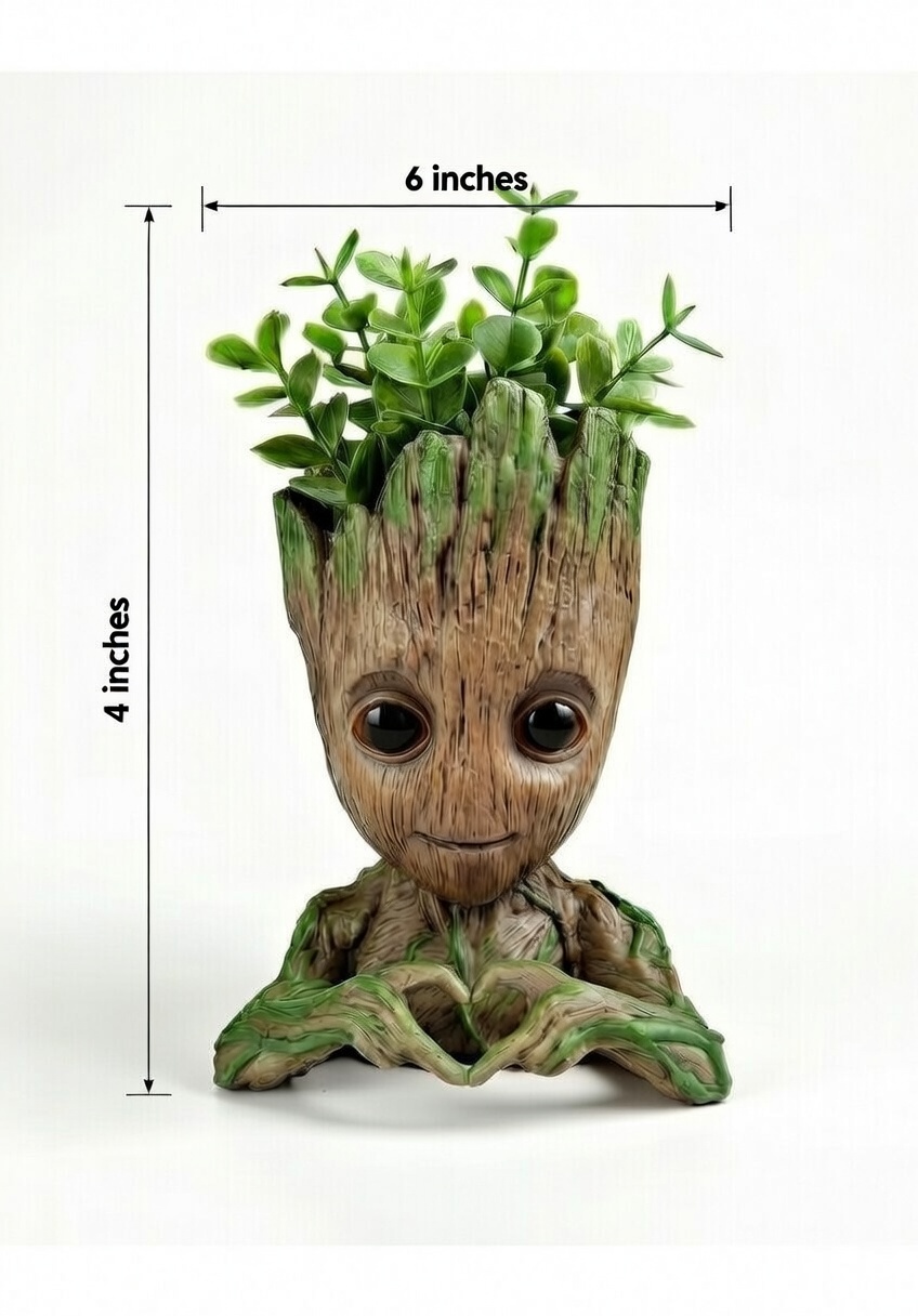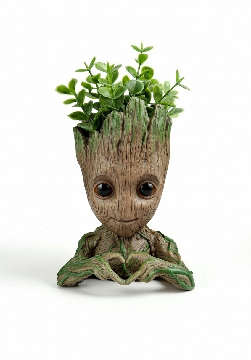 The groot heart planter statue is a charming and expressive decorative piece designed to bring warmth, love, and greenery into modern living spaces. Featuring a tree-inspired character holding a heart-shaped gesture at the base, this planter combines emotional symbolism with functional décor. The open planter top allows small plants, succulents, or artificial greenery to grow naturally from the design, creating a lively and meaningful visual accent.