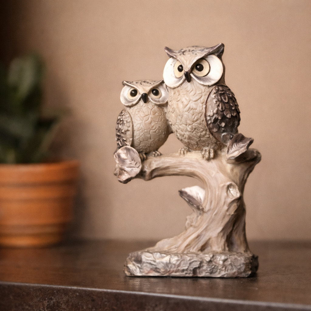 Choosing this white owl big statue means investing in décor that combines visual appeal with symbolic meaning. The dual-owl design represents companionship and harmony, making it suitable for family spaces or shared environments. The neutral color palette ensures it complements wood, marble, glass, and metal décor elements equally well.